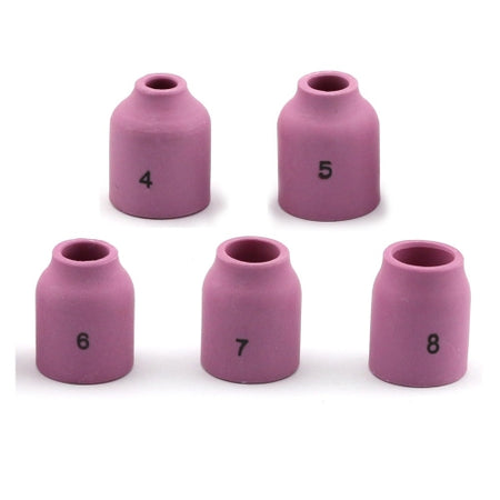 - 53N series gas lens Alumina ceramic cups for 9, 20 and 25 series TIG welding torches.