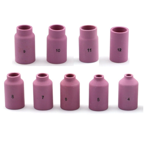 - 54N series gas lens Alumina ceramic cups for 17, 18 and 26 series TIG welding torches.